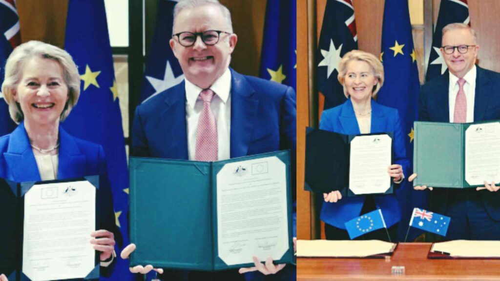Australia and the European Union signed a long-awaited trade deal on Tuesday, concluding eight years of negotiations. The agreement eliminates tariffs on nearly all European goods and the vast majority of Australian critical mineral exports.
